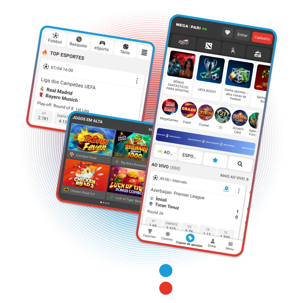 O aplicativo Megapari para Android e iOS oferece suporte aos idiomas português e inglês. Usuários do Brasil podem baixar o APK legalmente e desfrutar de apostas esportivas e jogos de cassino. O aplicativo móvel oficial do Megapari permite depósitos por meio de sistemas de pagamento populares e oferece uma plataforma de jogos segura.
